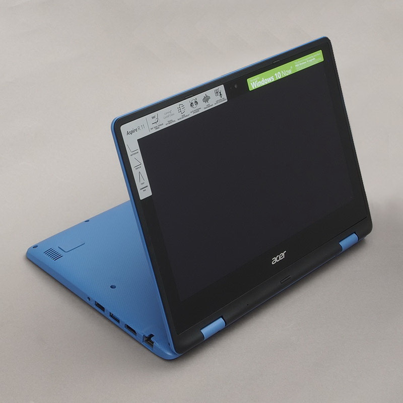 A notebook kijelzőjét két zsanér tartja, amelyek két oldalt helyezkednek el. Járásuk 90 fokos szögig puha, továbbhajtva viszont már elég masszív ahhoz, hogy a kijelzőt bármilyen helyzetben megtartsák. Mivel teljesen körbeforgatható az LCD, a zsanérok kettő forgáspontot is biztosítanak, értelemszerűen a gépen és a kijelzőn is egyet-egyet. Az Acer Aspire R11-et a klasszikus notebook és tablet állás mellett használhatjuk sátor módban, valamint érintőképernyő (médiaállvány) módban; ilyenkor a notebook klaviatúrája néz lefelé az asztalon (vannak gumibakok), a kijelzőt pedig kb. 290 fokban hátrahajtva használhatjuk.