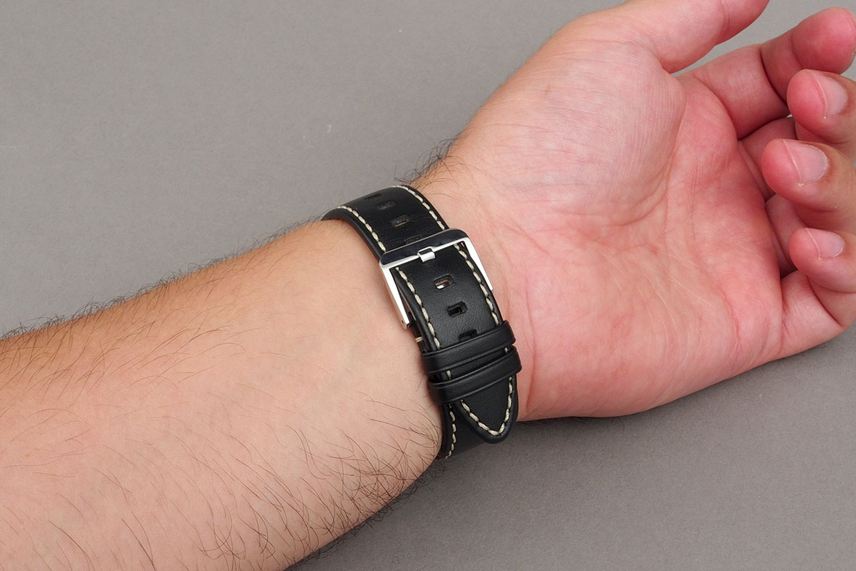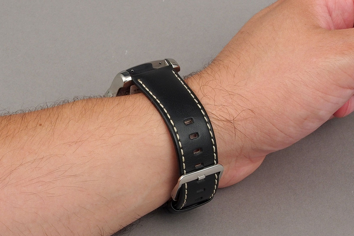 A LG Watch Urbane elegáns bőrpántokkal érkezik, a fekete bőrön a krémszínű, vastag cérna nagyon jól mutat. Sajnos a bőrön már pár napos használat után meglátszódnak a ráncok, de ez az anyaggal együtt jár, nem lehet vele mit kezdeni. A szíjak klasszikus csat segítségével kapcsolódnak egymáshoz. Ha cserélni szeretnénk, akkor ezt megtehetjük, bármilyen 22 mm-es alternatívát választhatunk.