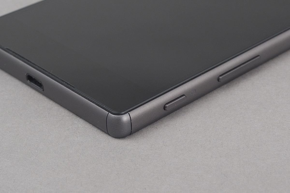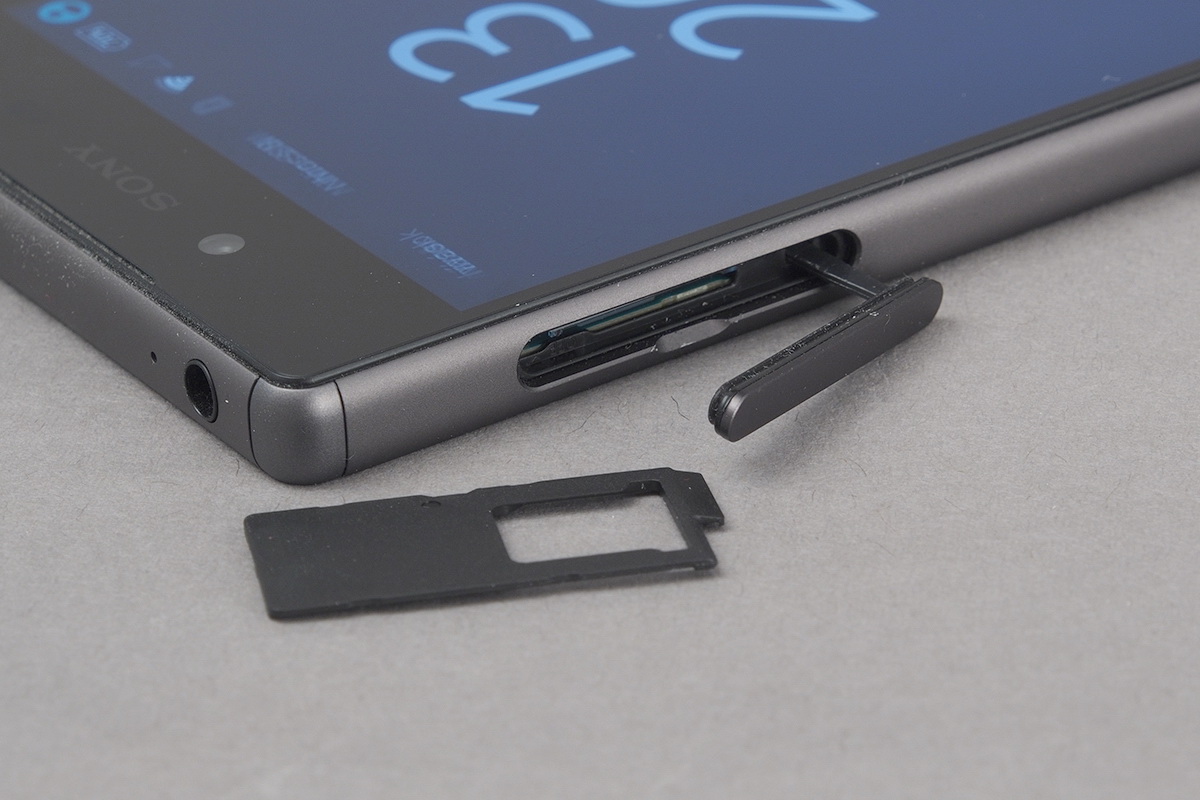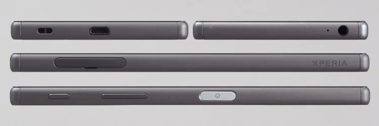 A Sony a telefonok előlapján már régóta nem használ semmilyen gombot, így a kezelőszervek mindegyike valamelyik oldalra került. Az első rész ennek ellenére sem teljesen átlagos. A kijelző felett a visszajelző LED, az előlapi kamera, a beszédhangszóró és a szenzorok sorakoznak egymás után, ez eddig tiszta, viszont a beszédhangszóró egyben a kihangosításért is felel, és van egy párja „lent” is. Ami az oldalsó részt illeti, néhány dolgot érdemes kiemelni. Például azt, hogy a SIM-microSD tálca nyílását gumírozott ajtó takarja, jelezvén, hogy az Xperia Z5 is víz- és porálló (IP68-as szabvány szerint, ami legfeljebb 30 perces időtartamra és 1,5 méteres mélységre vonatkozik).