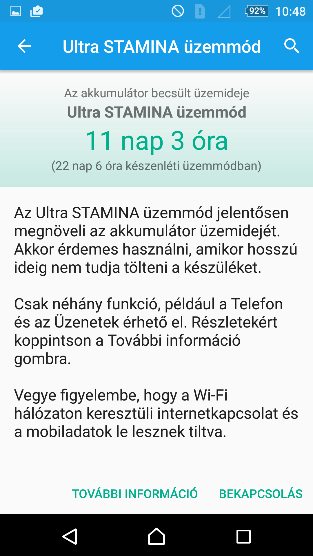 Túrázóknak hasznos lehet viszont az UltraStamina mód, amely töltésenként kb. 12 nap készenléti időt biztosít, ha minden okos funkciót hajlandók vagyunk beáldozni. Visszás kicsit, hogy a Snapdragon 810 hiába támogatja a gyorstöltés funkciót, ha a csomagban lévő adapter viszont klasszikus, 1,5 amperes töltőfej – amivel több mint két óra feltölteni a telefont.