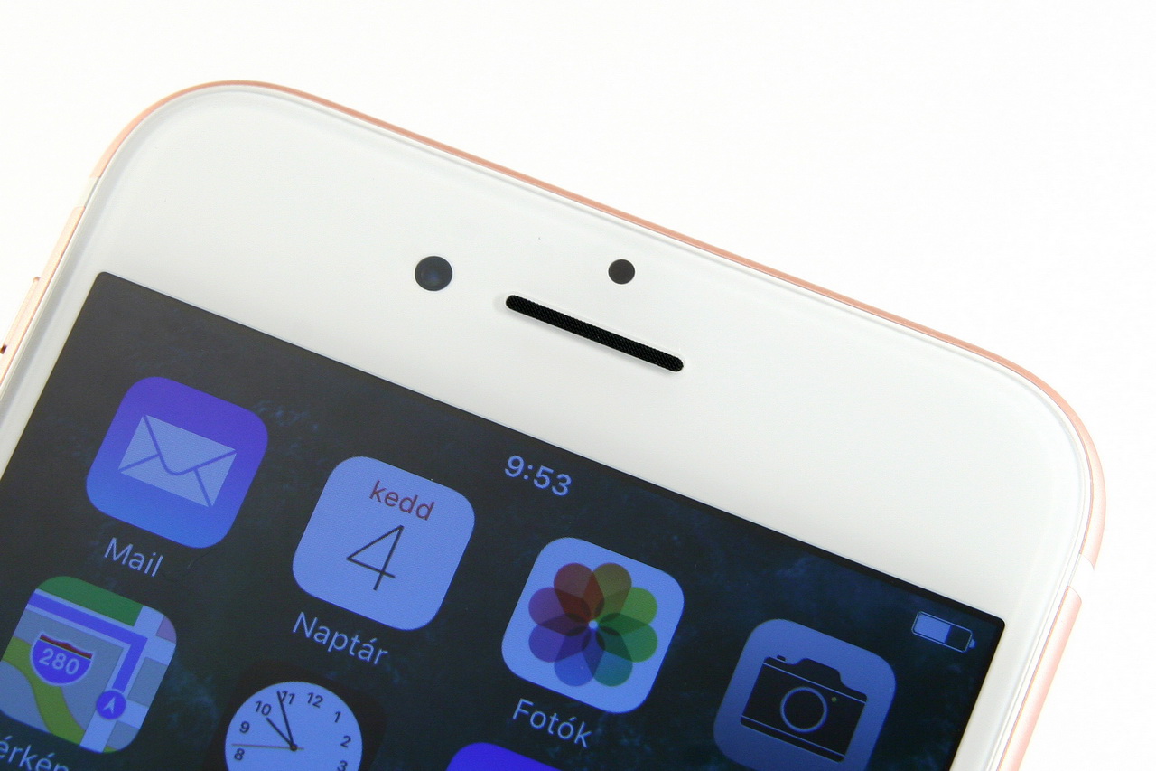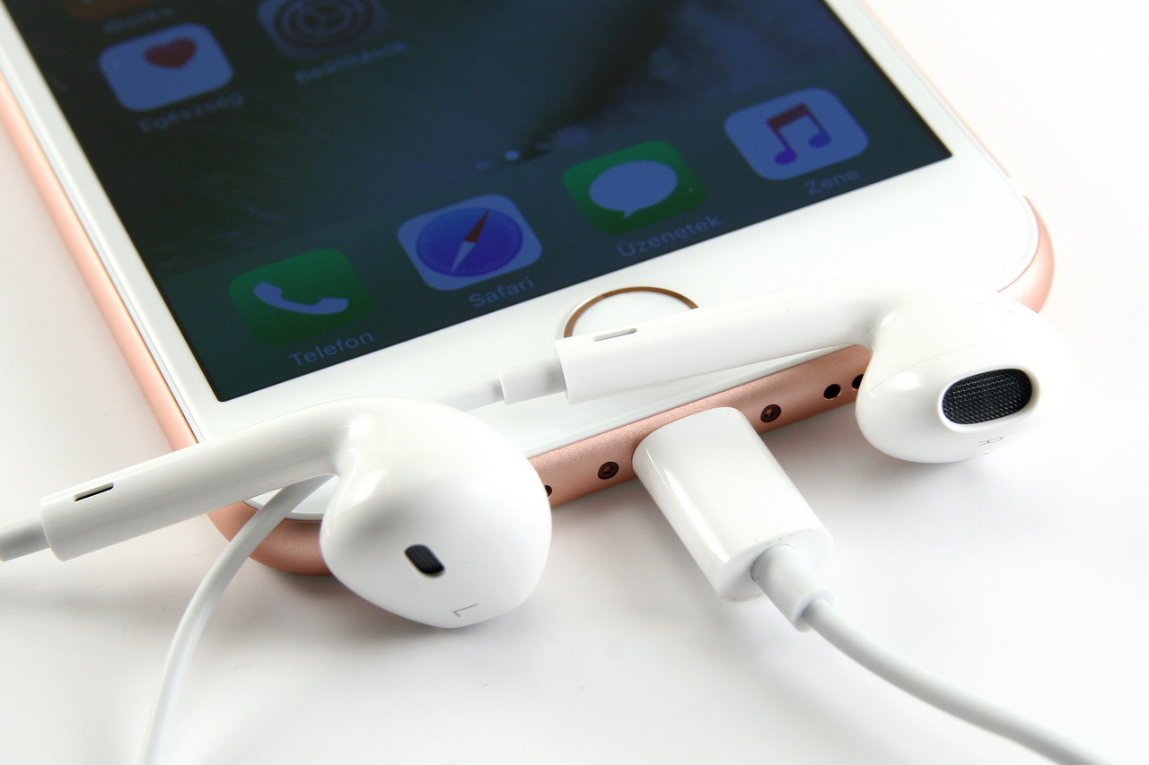 Baloldalt található a némítógomb és a hangerőállító gombpár, az ellentétes oldal pedig a bekapcsológombnak és a kipöckölhető SIM-tálcának ad otthont. Ez utóbbi egyetlen nanoSIM-et képes magába fogadni, vagyis dual-SIM és microSD támogatás továbbra sincs. A felső él teljesen csupasz, alul pedig középen található az Apple egyedi rendszer-csatlakozó aljzata, a Lightning port. Ez utóbbitól balra és jobbra is hangszóró lyukakra lehetünk figyelmesek, melyek közül azonban csak a jobboldali mögött található hangszóró. Jó hír, hogy a hetes iPhone végre sztereó módon is kihangosítható: ehhez egy fenti és egy alsó hangszórót használ a készülék. A jack dugaljt kigyomlálta az Apple, amit lehet szeretni vagy éppen utálni, az viszont tény, hogy csak idő kérdése, és ez az analóg kimenet szépen lassan teljesen ki fog kopni az iparágból. Alapáron egy maximum közepesnek mondható minőségű, Lightning portos EarPods fülest kapunk a telefon mellé, valamint egy Lightning/jack adaptert. Negatívum, hogy egy időben csak tölteni tudjuk a mobilt, vagy csak zenét hallgatni, illetve, hogy az Apple saját vezeték nélküli fülese, az AirPods nem kevesebb mint 60 ezer forintba kerül.