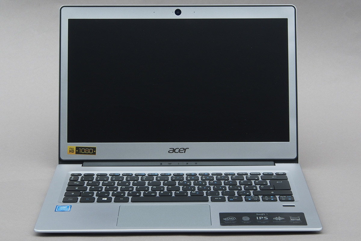 A Swift 3 14 colos LCD-je IPS-technológiájú és Full HD felbontást kínál. Habár nem érintésérzékeny, került elég üveglap is, ami a színeket valamivel szebbé teszi, de cserébe tükröződik és az ujjlenyomatokat is kiválóan gyűjti. Nem véletlenül szeretjük jobban a matt kijelzőket; a Swift 1-esre szerencsére már ilyen panel került. A Full HD részletesség 13,3 colos méretben is jól jön, azt pedig, hogy a képminőséggel ne legyen probléma, szintén IPS-technológia garantálja.