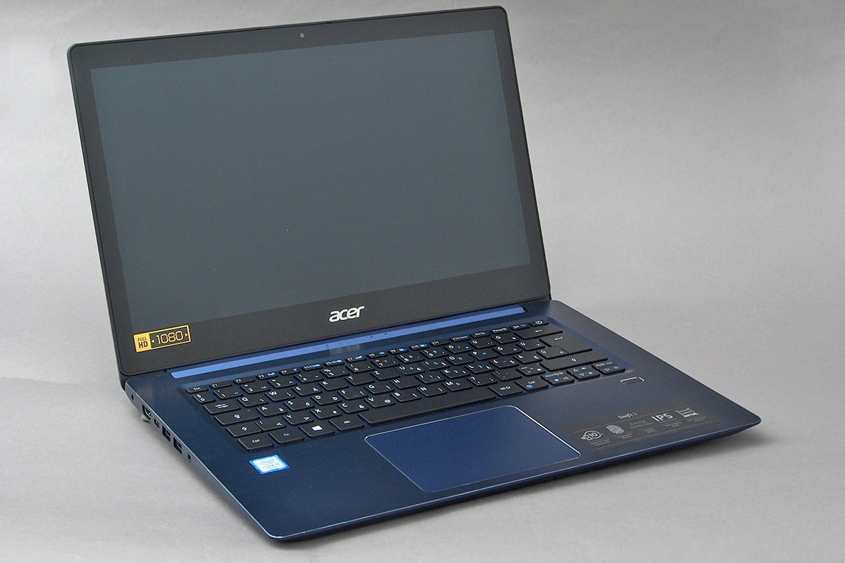 Az anyagválasztásba nem lehet belekötni, a gépet az Acer fém készülékházba bújtatta, amelynek megmunkálása is tökéletes. A monitort és a fő egységet vastag, középen elhelyezett zsanér tartja, amelynek érdekessége, hogy amikor kihajtjuk, akkor megemeli kissé a notebook fenekét. A zsanér erőssége megfelelő, a kijelzőt minden helyzetben stabilan tartja, és 180 fokos nyithatóságot biztosít. Viszont nem lehet kinyitni egy ujjal. A nyár végén nálunk járt Swift 3-as pezsgőszínű volt, most viszont egy kék gépet kaptunk, és ez nekünk jobban bejött – ezzel a színnel a gép úgy tud kitűnni a tömegből, hogy közben eleganciát is sugároz. A felület mindenhol matt, így a borítás még az ujjlenyomatokra sem túl érzékeny.