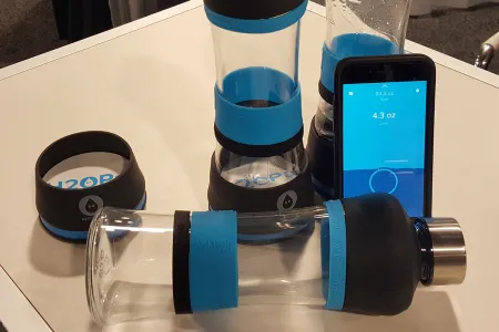 Íme egy üveg, amelyhez egy mérleg és telefonos kísérő alkalmazás is tartozik – és utóbbi az, amelyik itat.