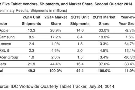 A tabletek piacán még vezet a vállalat, de az előnye nagyon, 6,1 százalékponttal csökkent.
