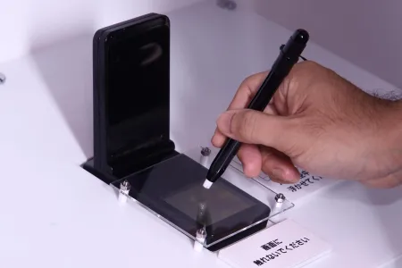 Az NTT DoCoMo standján bukkantunk erre az érdekes készülékre, aminek alsó fele egy gomb benyomásával...