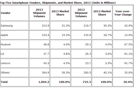 1 milliárd okostelefon fogyott 2013-ban