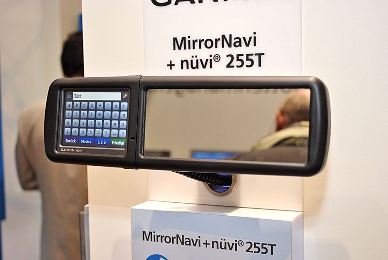 Érdekességnek még ott volt a standon egy jópofa, visszapillantó-tükörrel kombinált nüvi-adapter, illetve élőben is megnézhettük a túrázóknak készült Dakota 20-at. Ez a kütyü úgy néz ki, mintha a régi eTrex sorozatot ötvözték volna az érintőképernyős Oregonokkal.