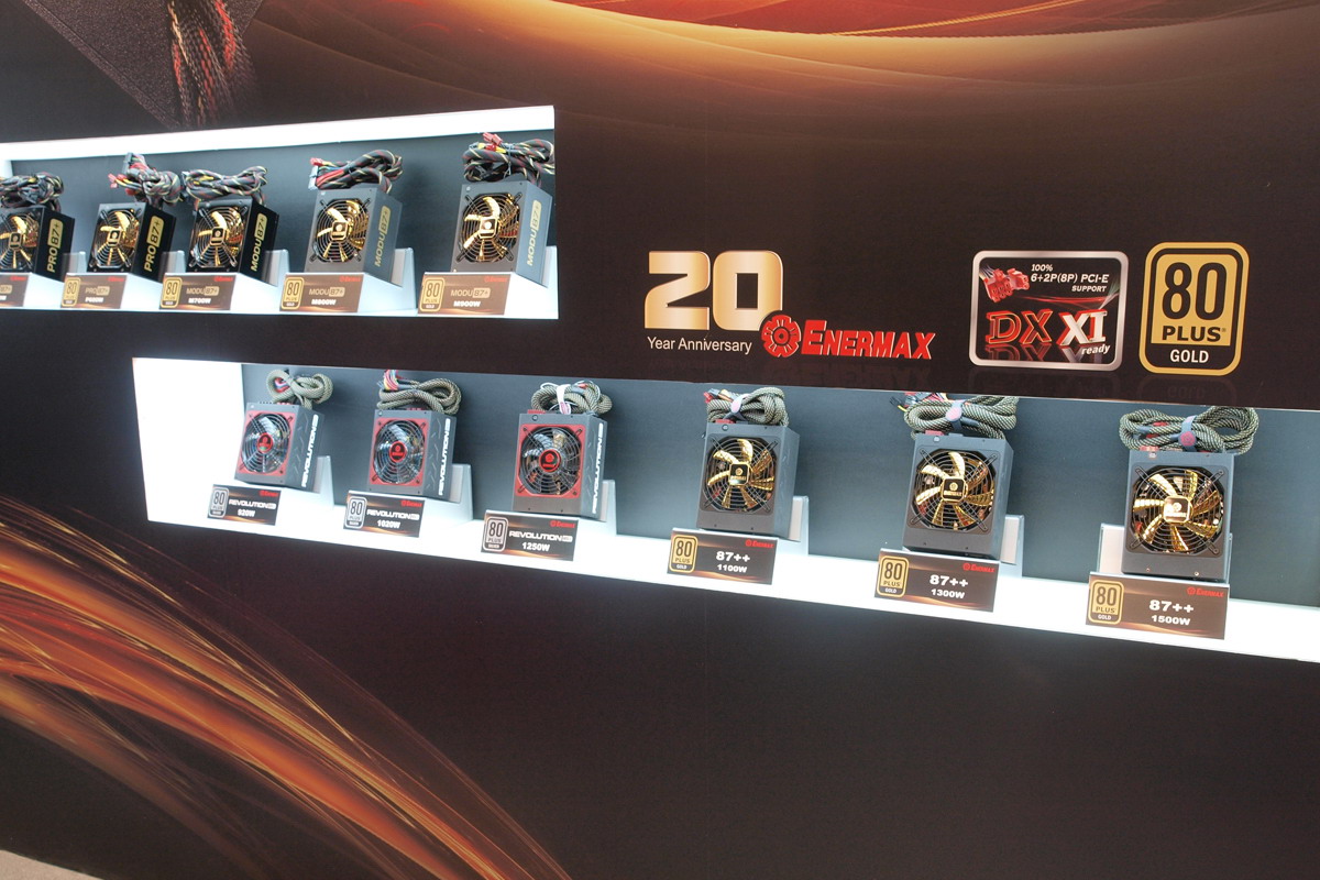 Aligha kell ecsetelni, hogy az Enermax gyártja az egyik, ha nem a legjobb minőségű tápegységeket. Úgy tűnik, hogy a tajvani gyártó nemcsak a minőségbeli, hanem a teljesítménybeli és hatékonyságbeli versenyben is az élen jár; a kiállításon ugyanis egy egész sorozat Revolution 87 pluszos tápot jelentettek be. A PSU-k teljesítménye 500 és 1500 watt közötti, s valamennyi új típus moduláris.