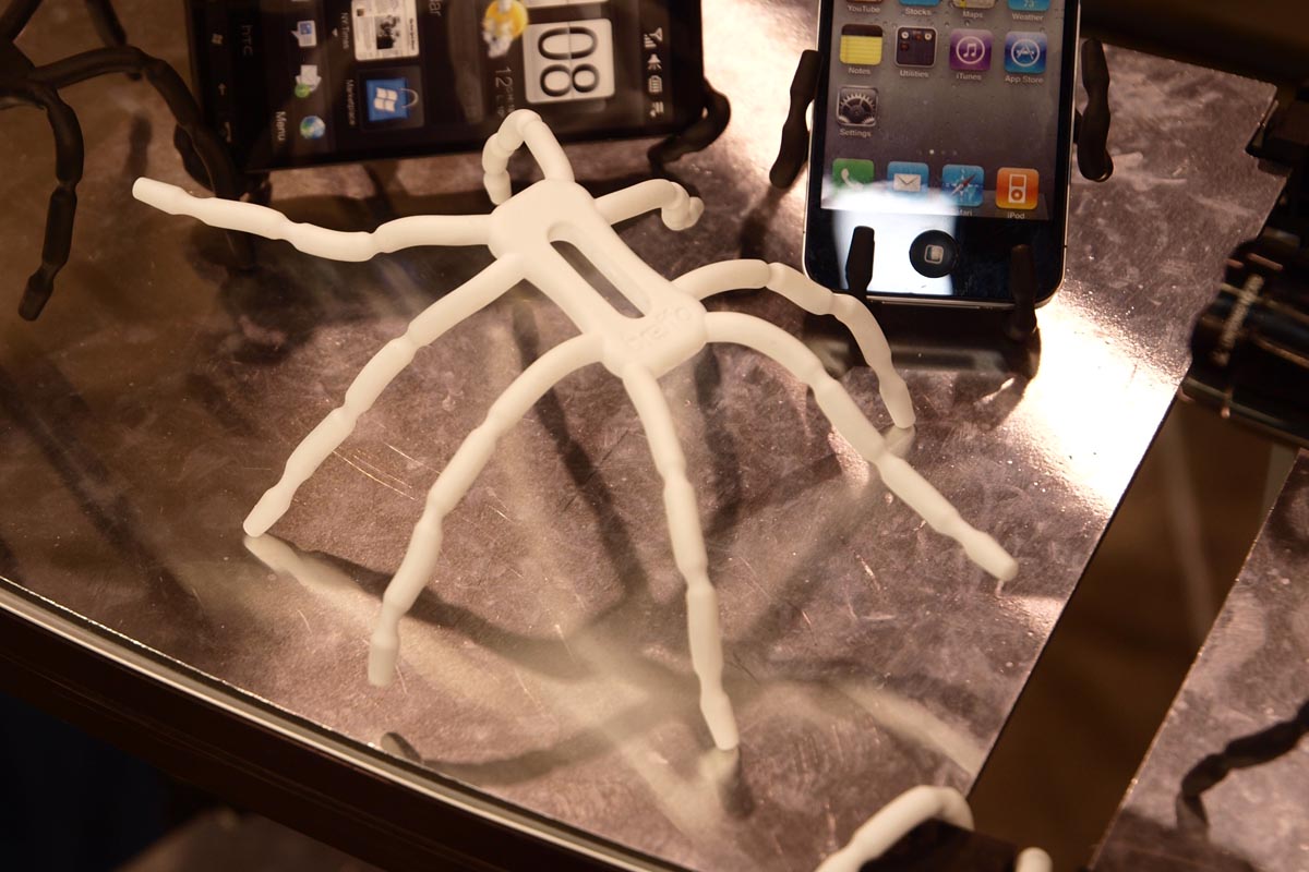 A Spiderpodium nevő eszköz kétféle méretben készül, a kisebb változat mobiltelefonok és kompakt fényképezőgépek tömegét tudja stabilan tartani, a nagyobb változat viszont akár egy iPaddal is vígan elvan. A nyolclábú szerkezetek belső váza acél, de a speciális kialakításnak köszönhetően (ha nem direkt az eltörésre megyünk) évekig lehet hajlítgatni különösebb károsodás nélkül, a felvett formát pedig elég erősen megtartják a lábak ahhoz, hogy egy drága kamerát is rá merjünk bízni,
