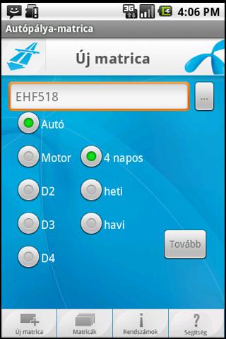 A másik program nem ennyire egyedi, de remélhetőleg gyakrabban lesz rá szükség: ez a virtuális autópályamatrica megvásárlását teszi egyszerűbbé azzal, hogy átveszi a „bonyolult” SMS-ek elküldésének feladatát. Csak meg kell adnunk, hogy milyen kategóriájú gépjárművel milyen matricát szeretnénk vásárolni, a többi pedig a szoftver dolga.