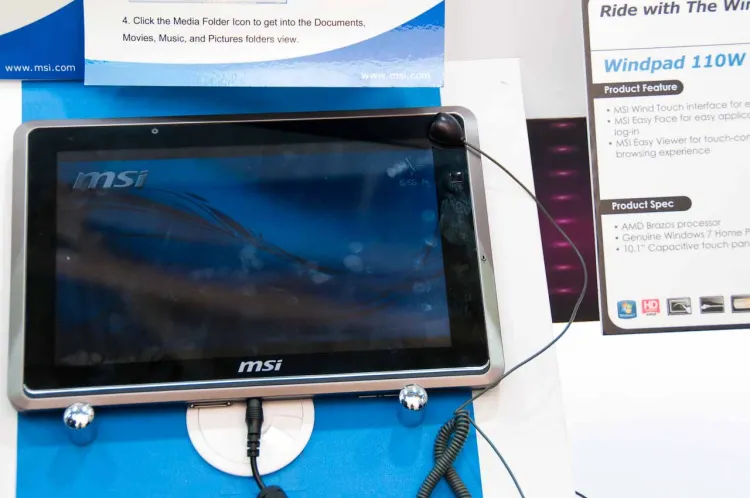 Az MSI rengeteg táblagéppel készült, volt közöttük ARM, Intel és AMD alapú is. Közülük legérdekesebbnek az AMD-s változat ígérkezett, hiszen ezt a platformot hivatalosan csak a mai napon jelentette be az amerikai processzorgyártó. A WindPad 110W az első demókészülék – forgalmazásáról egyébként egyelőre nincs is hír, de a kézbe vett tesztpéldány alapján a fejlesztések egészen jól haladnak.