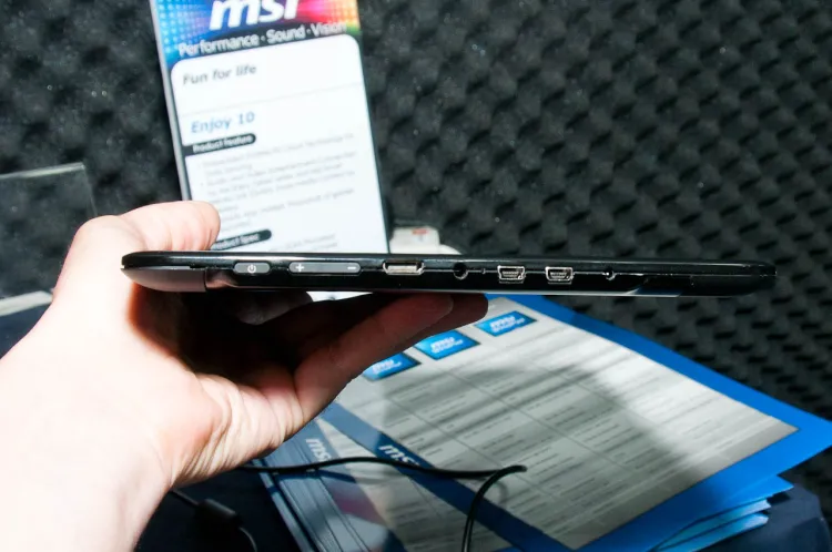 Az MSI WindPad Enjoy névre hallgató táblagépeinek egyik legfontosabb ismertetője, hogy olcsók lesznek. A 10 colos verzió ára az USA-ban 300 dollár alatt lesz, a 7 colos verzióért pedig értelemszerűen még kevesebbet kell majd fizetni, de egyelőre még nem tudni, mennyit. Sajnos az olcsó húsnak híg a leve tipikus esetével (két esetével) álltunk szemben a standon, mert a tabletek több sebből véreznek. És ráadásul úgy, hogy a kialakításról még nem is beszélünk, tiszteletben tartva, hogy egyelőre csak prototípusokról van szó.