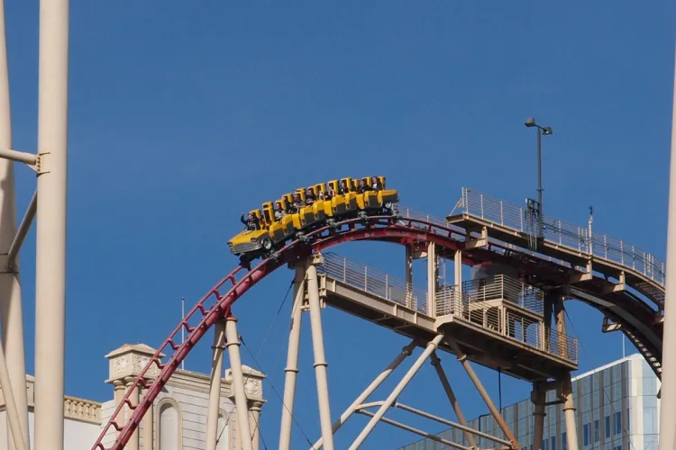 (Las Vegasban jelenleg egyébként még egy hullámvasút üzemel, amely a Circus Circusban van, ám arra nem pazaroltuk a pénzt, mert nagyon rövid: a menetidő 1 perc 20 másodperc, ami a felhúzás idejét is tartalmazza. Korábban a Saharában is volt egy félig az épületen kívül, félig azon belül közlekedő, szintén nem túl hosszú katapult-hullámvasút kombó, ám azt tavaly nyáron a szállodával együtt végleg bezárták.)