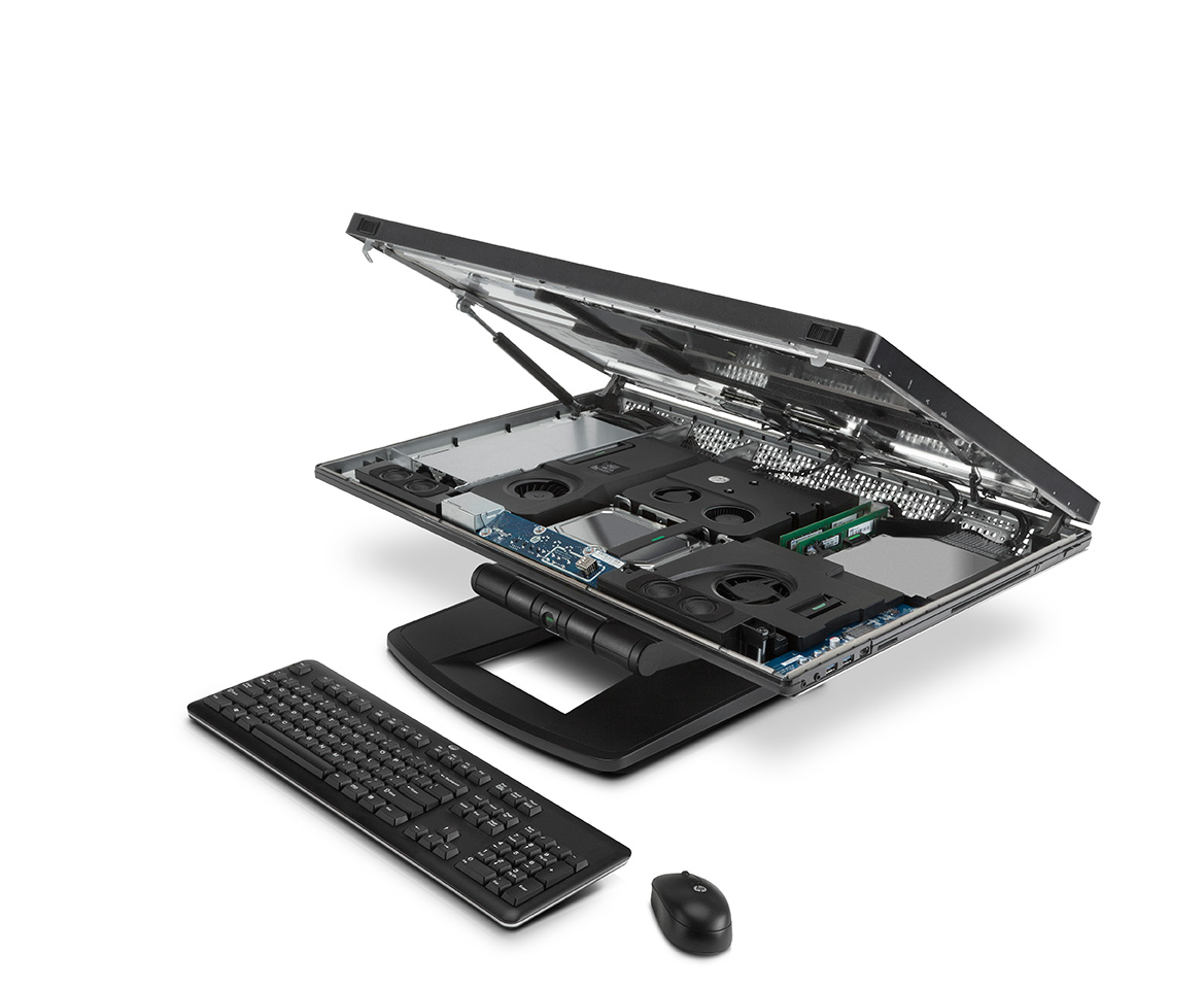 Az ipari környezetbe szánt all-in-one a gyártó első ekkora készüléke. A gép komoly, cserélhető hardvert kapott.