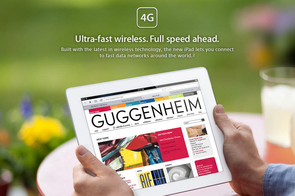 A következő terület, ahol szintet lép az Apple, az az adatkommunikáció. Az új iPadból nem készül 3G-s modell, helyette a 4G-s változatok tűnnek majd fel, amivel adott esetben akár gyorsabban netezhetünk a táblagépen, mint a PC-n, vezetékes internettel. WiFi-vel használva továbbra is 10 órán keresztül működik az új iPad, 4G-vel pedig 9 órán keresztül üzemképes (ez ugyanannyi, mint amennyit az iPad 2 bekapcsolt 3G-vel megy). Az Apple nem javított ugyanakkor az akkumulátor képességein, részben valószínűleg ennek is köszönhető, hogy az iPad 2 8,8 mm-es vastagsága után az új modell 9,4 mm-es (az akku kapacitása 25-ről 42,5 Wh-ra nőtt), tömege pedig szintén nagyobb valamivel, 635 gram körüli.