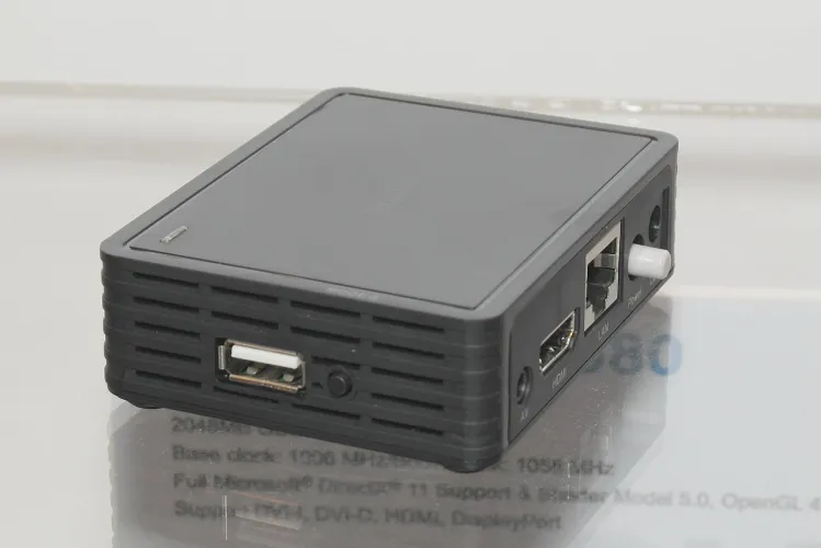 A kis dobozka egy HDMI, egy Ethernet és egy jack bemenettel rendelkezik, az oldalára pedig egy USB port került, ez azonban csak a firmware frissítésére szolgál, önálló médialejátszóként a Wi2000D ilyen módon nem használható.