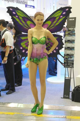 Nem csak a legújabb alaplapokkal, ultrabookokkal és táblagépekkel próbálják meg a gyártók standjukra csalogatni a látogatókat, hanem a lengén öltözött hoszteszek hadával is, akik egyszerre próbálnak meg kedvesen mosolyogni, különféle ajándékokat átnyújtani, műsort vezetni és állni a közös fotózásra váró helyi geekek rohamát.