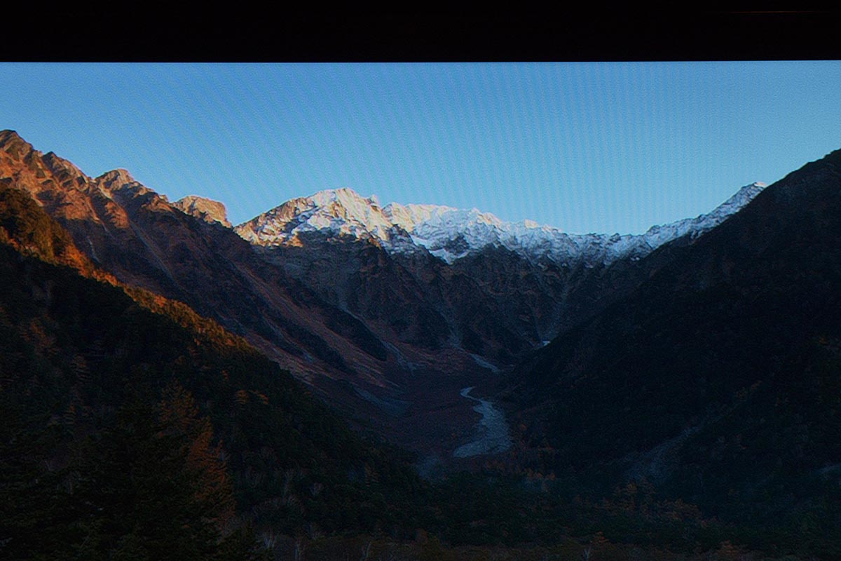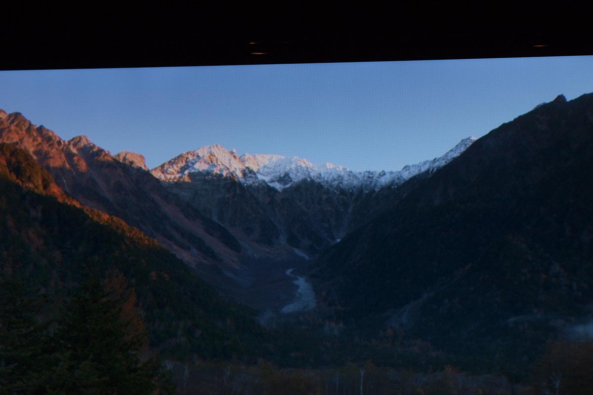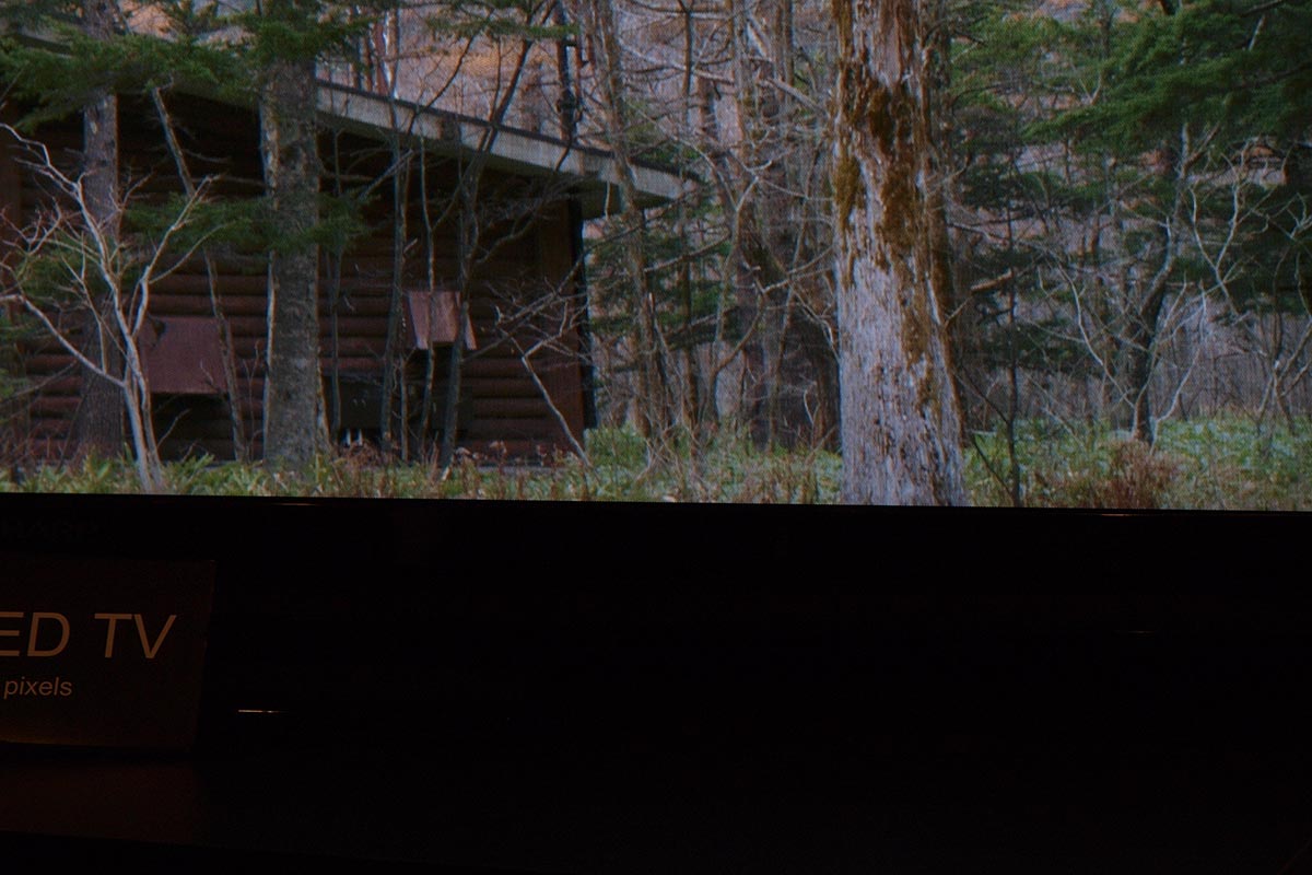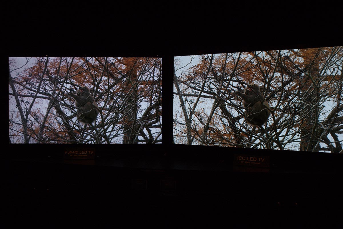 A Sharp egyelőre nem demózott 4K felbontású, kereskedelmi forgalomba szánt tévét, pedig úgy volt, hogy a japán gyártó idén piacra dobja első UHD felbontású modelljét, vagy modelljeit. A standon ennek ellenére volt 4K-s demó, de nem a hagyományos értelemben vett demóról beszélhetünk, mert nem a készülék, hanem a 2K-4K felskálázó algoritmus volt a főszereplő. Az I-cubed Research Centerrel közösen fejlesztett ICC algoritmus kifejlesztésekor a mérnökök a szemünk és az agyunk között lejátszódó folyamatokat próbálták újramodellezni, hogy a végeredmény minél tökéletesebb legyen – és a bemutató alapján elmondhatjuk, hogy az eredmény tényleg egészen kiváló. A rendszert tavaly a CEATEC-en már láttuk működés közben is, de akkor még nem volt egyértelműen tiszta a verseny – most viszont egyértelműen láttuk, hogy ugyanaz a teljesen hétköznapi Blu-ray lejátszó hajtja meg mindkét tévét, és nem volt trükk a képélesítéssel sem. A felskálázott kép rengeteget fejlődött, pedig már tavaly is lenyűgöző volt, amit láttunk. A kép mostanra finom film grain effektet is kapott, részben ennek köszönhető, hogy eltűnt a leheletnyi túlélesítés, és, hogy a kép tökéletesen természetesnek tűnt – megkockáztatnák akár azt is, hogy a kiállításon látott 4K-s tévék közül a Sharp esetében volt a legjobb a kép, de sajnos csak a Sharp és a Panasonic demóztak sötét szobában, mindenki másnál világos környezetben, túlszaturált és túlélesített képet láttunk, így a verseny nem lenne fair. Az alábbi képeket teljes mérteben érdemes megnézni, balra a Full HD, jobbra a 4K×2K-s kép kivágott részlete látható.
