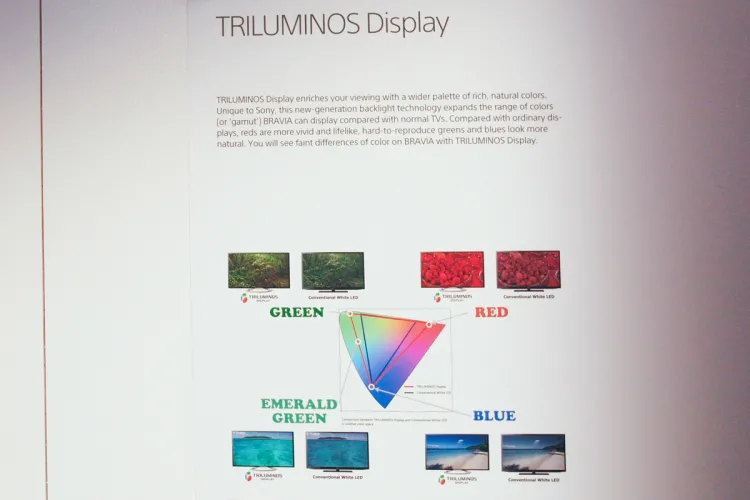 A Sony két nappal ezelőtti bejelentésekor azt ígérte, hogy a TRILUMINOUS technológia segítségével minden eddiginél szebb színeket lesznek képesek megjeleníteni a tévék – ebből pedig már akkor sejtettük, hogy a technológia valójában nem szól másról, minthogy a Sony megoldotta, hogy a háttérvilágítás fénye a korábbinál is fehérebb legyen. Az ilyen technológiák ugyanis rendszerint arról szólnak, hogy a lefedett színteret növelik meg a gyártók – a TRILUMINOUS esetében is pontosan ez történt, történik. Annyiban mégis speciális a dolog, hogy a Sony nem egyszerűen a fényforrás cseréjével érte el, hogy a fehér színe még inkább közelítsen A FEHÉR színhez, hanem egy színszűrőt is alkalmaz, amely teljesen megtisztítja a LED-ek fényét. Ahogyan az lenni szokott, elsősorban a vörös és zöld árnyalatok esetében látszik meg a különbség (micsoda véletlen, hogy a tesztvideón is pontosan ezek a színek voltak túlsúlyban). Röviden azt mondhatjuk, a technológia tényleg működik, és vele felszerelt Sony tévék soha nem látott színeket képesek megjeleníteni – a baj csak az, hogy ezt szó szerint kell értenünk, a tévéken olyan színeket is láthatunk, amelyek a valóságban majdnem biztos, hogy soha nem fordulnak elő.