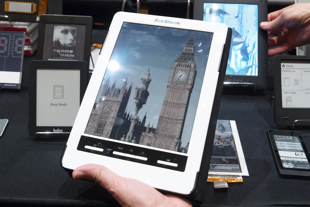 Az E Ink színes kijelzője nem konkrétan a CES-en debütált, de azért megnéztük, mert a gyártó fejlesztéseit általában csak a kiállításokon tudjuk alaposabban szemügyre venni. A vállalat már szállítja a színes kijelzőt, amely a korábbihoz képest egészen jó színek megjelenítésére képes; sajnos a minőség szerintünk még nem éri el a kívánatos szintet, mert a kijelző egyszerűen túl sötét, és csak a telt színek megjelenítése mondható jónak (de a panelen már ezek is elég sápadtak), de az irány, amerre a vállalat halad, kétségtelenül jó. Egyébként egy másik prototípuson remekül látszott, hogy a gondot nem a szín jelenti, hanem az, ha sokfélét kell tudni megjeleníteni – a képeken a hosszú vékony panel például kifogástalan fekete és kifogástalan piros színt tudott mutatni, a kék valamint sárga átmeneteken látszik, hogy a színátmenetekkel sincsen gond, azonban ez a panel tényleg csak ennyit tudott, bármilyen árnyalatot nem lehetett rajta beállítani.