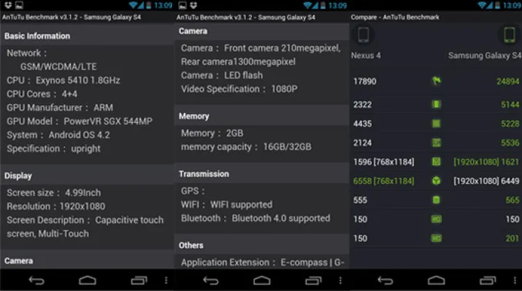 Az AnTuTu nevű benchmark programban megjelent a lista legtetején egy Samsung Galaxy S IV nevű készülék, és vele együtt persze a fontosabb alapadatok, mint például az, hogy a mobil a Samsung saját Exynos 5410-es processzorát kapta. Ez a már korábban bejelentett Exynos 5 Octa (4+4 mag), a magok pedig 1,8GHz-en üzemelnek, mint az az AnTuTuból kiderült.