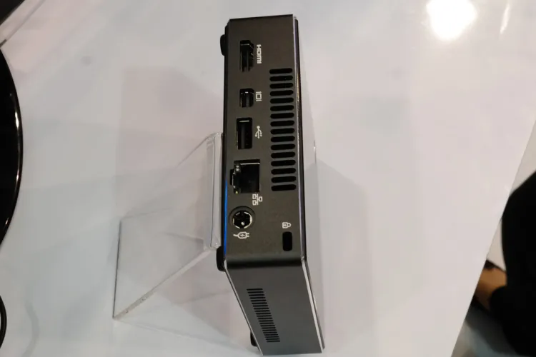 Ezek közül az előbbi már foglalt, hiszen itt találjuk a Wi-Fi modult, ami gyári tartozék, míg a másodikhoz az SSD tároló csatlakozik majd. Ez az opciók szerint legfeljebb 256 GB kapacitású lehet. A gép előlapján egy USB 3.0-ás portot találunk, ezt hátul egy második egészíti ki. A további csatlakozási lehetőségek: Ethernet, mini DisplayPort, HDMI kimenet. Ez utóbbi kettő egyszerre is használható, tehát multimonitoros kiépítés is elképzelhető, ráadásul a BRIX dobozában egy VESA adapter is van, tehát még a monitor hátára is felszerelhetjük a kis eszközt.