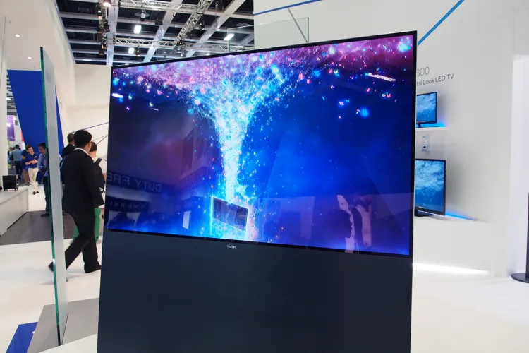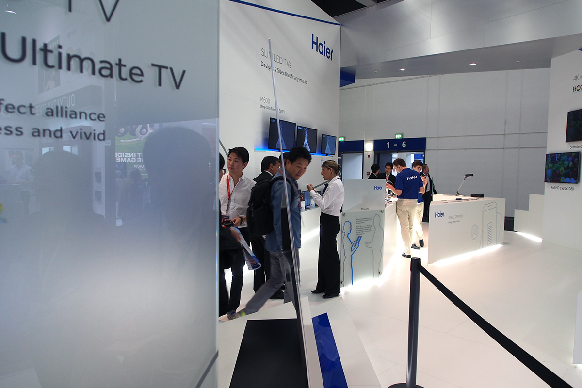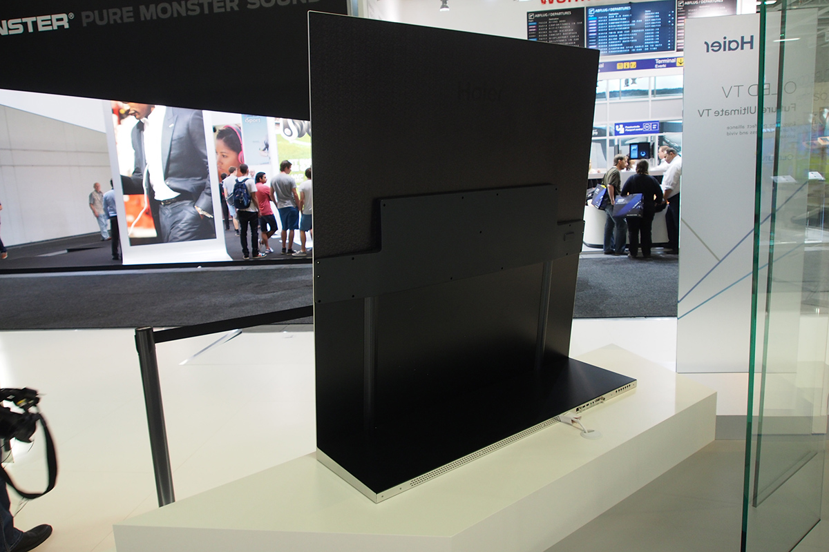 A stand bejáratánál a falat óriási, de közelebbről meg nem határozott méretű 4K-s tévék borították, de a show-t mellettük a kisebb (de semmi esetre sem kicsi) OLED tévé vitte el. Persze a Haier OLED tévéje még nem 4K felbontású, de így sem volt csúnya képe, sőt.
