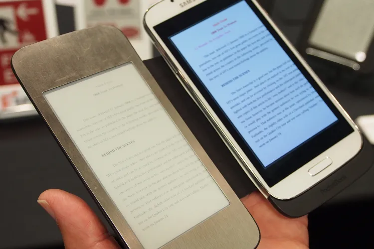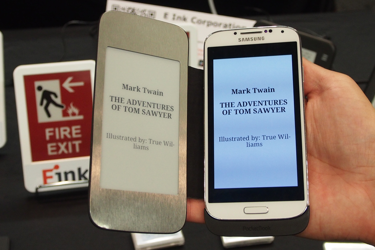 Egy másik felhasználási javaslat szerint az E Ink felhasználható mobiltelefonok védőtokján külső kijelzőként, amin a szemünket és a telefon akkumulátorát kímélve tudunk könyvet olvasni. Az IFA-n a Alcatel is mutatott hasonló tokot, de az E Ink standján Samsung mobilhoz készített verzióval találkoztunk.