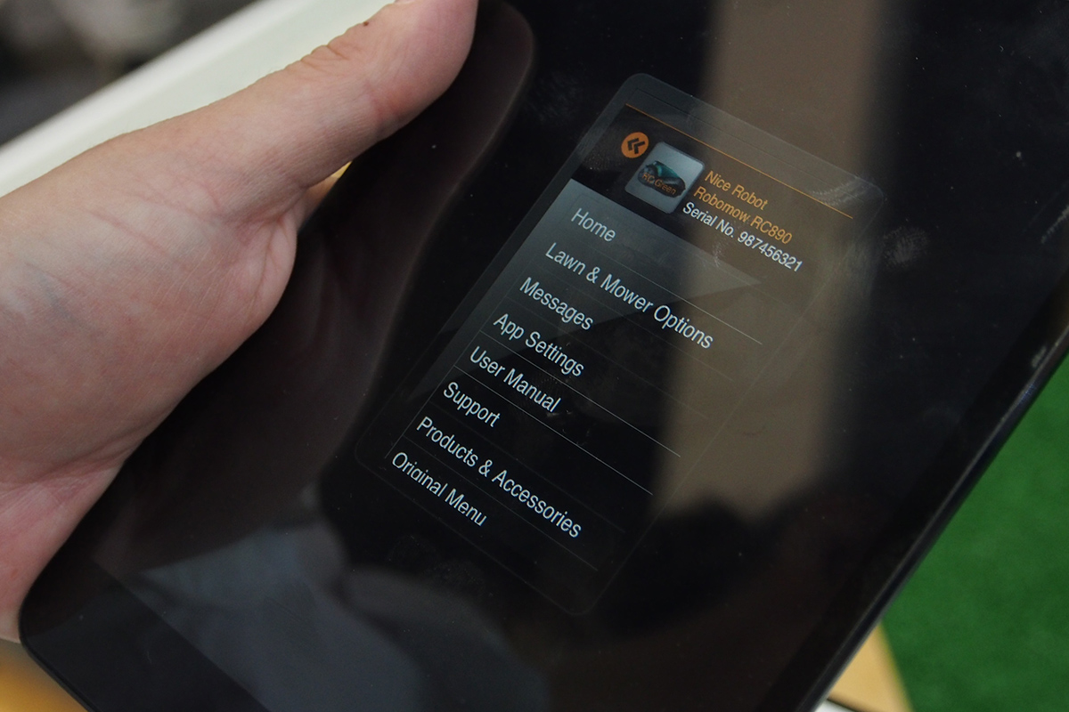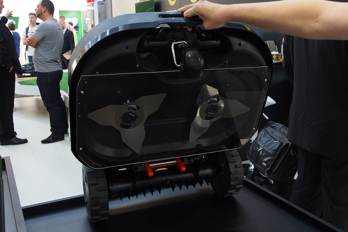 Geekek szempontjából óriási előrelépés, hogy az összes modell beépített Bluetooth adapterrel érkezik, amihez a gyártó ingyenesen letölthető mobil alkalmazásával lehet csatlakozni. A standon egy iPad minivel mutatták be a szoftver működését, de a katalógus sajnos nem részletezi, hogy Androidra és Windows-ra is elkészül-e az alkalmazás. A fekete és a zöld modelleknél az alkalmazással a robot is irányítható, míg a pirosnál a manuális irányítás nem elérhető. Az alkalmazáson keresztül minden modellnél elindítható a fűnyírás, a dokkolóba küldhető a robot és azonnal megállítható a munka, de lehetőség van a következő programozott indítás letiltására is. Természetesen mindezt csak akkor, ha a Bluetooth hatótávolságán belül vagyunk. Ha ennél nagyobb távolságból szeretnénk irányítani a robotot, akkor a GSM modulra lesz szükségünk, ami a piros modellekhez megint csak nem lesz elérhető. A GSM modul tudása és ára egyelőre nem ismert.