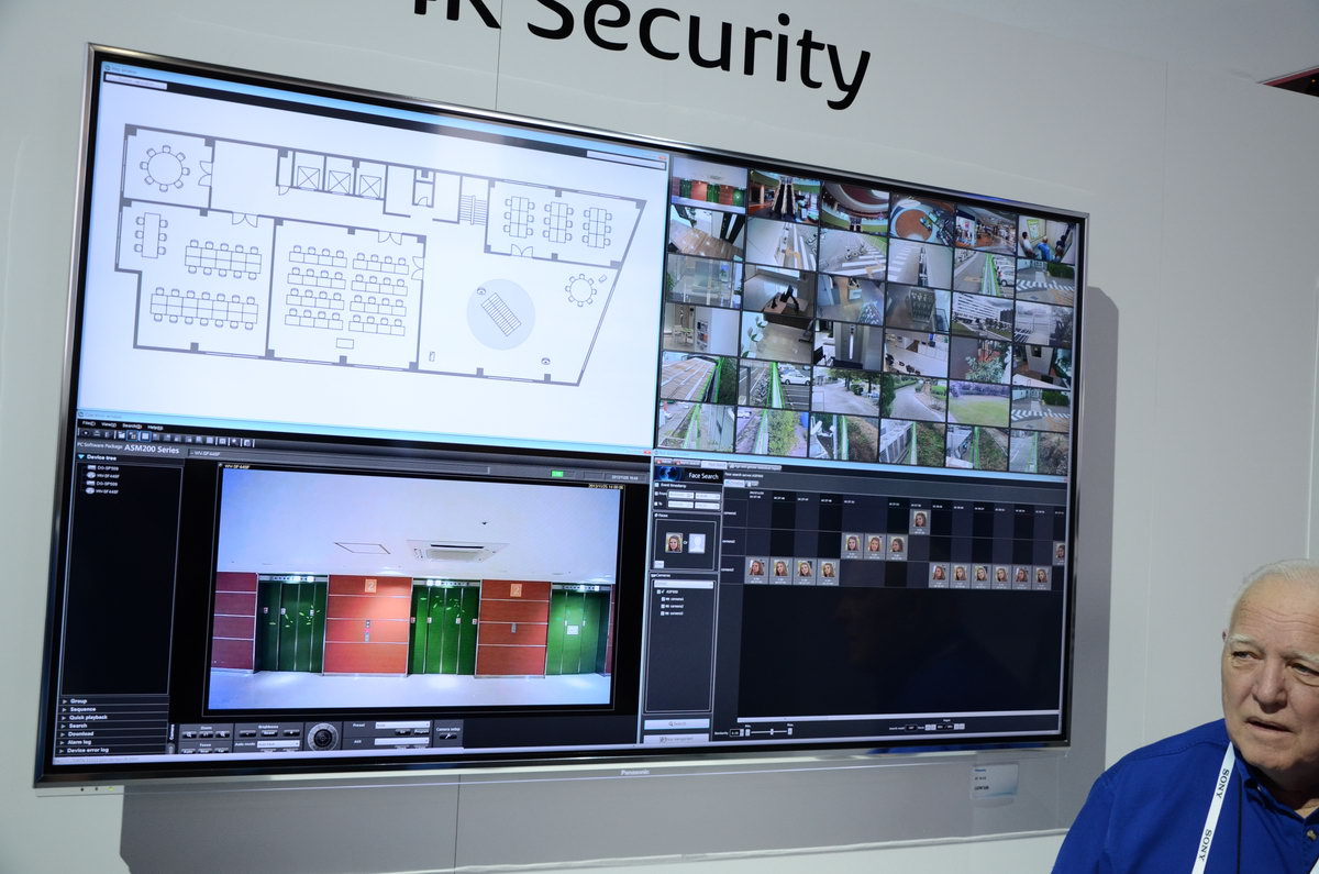 A Panasonic azonban nemcsak a kijelzőt fejleszti, hanem komplett biztonsági csomagokban is gondolkodik, amelyek képesek nemcsak követni, hanem elemezni is – mondjuk egy vállalatnál – dolgozók mozgását. A követés egyelőre a beléptető kártya adatai alapján történik, de később simán működhet a dolog arcfelismeréssel is. A rendszer lényege az, hogy megtanulja a viselkedésmintákat, így rövid idő eltelte után ki tudja szűrni a gyanús viselkedést – ha például valaki olyan emeletre megy, ahol korábban még sosem járt, akkor máris megy a figyelmeztetés a rendszergazda felé, de gyanús természetesen az is, ha ismeretlen jut be a színfalak mögé.