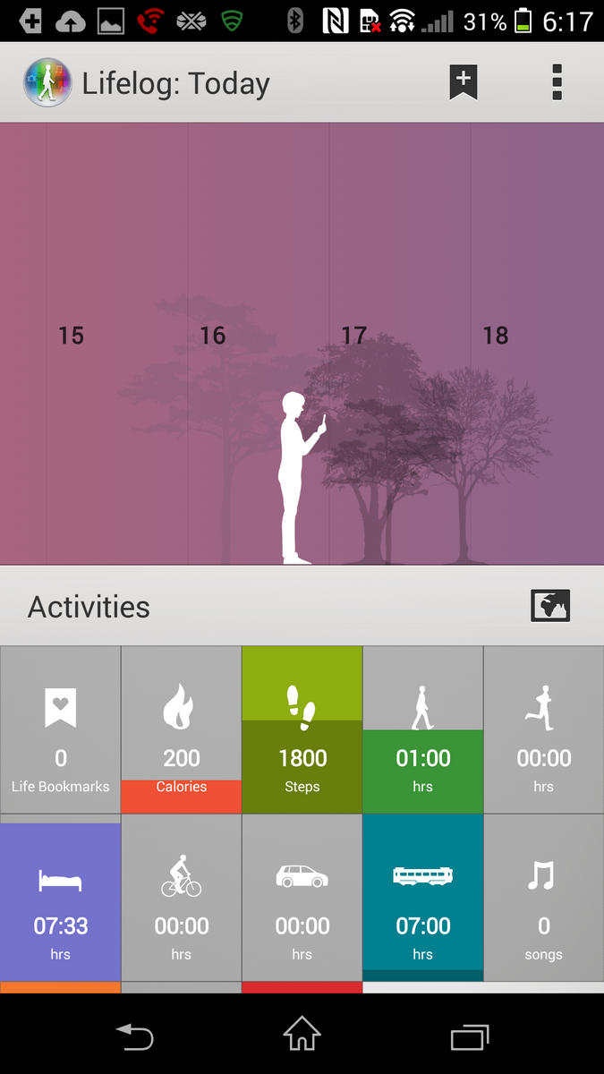 A Lifelog alkalmazás egyelőre még elég béta állapotban van, sokszor lefagyott, ezért képernyőmentés is csak egyet készíthettünk, de már most jól látszik, hogy valóban rengeteg adatot tud gyűjteni, elemezni és eltárolni – hogy ez jó-e nekünk, akarjuk-e ezt egyáltalán, az hamarosan, a piaci start után minden bizonnyal ki fog derülni a felhasználói reakciókból.