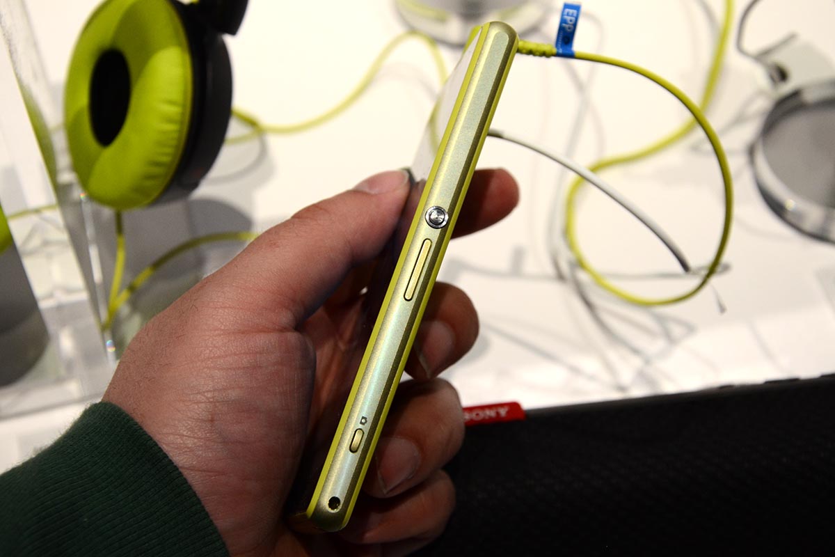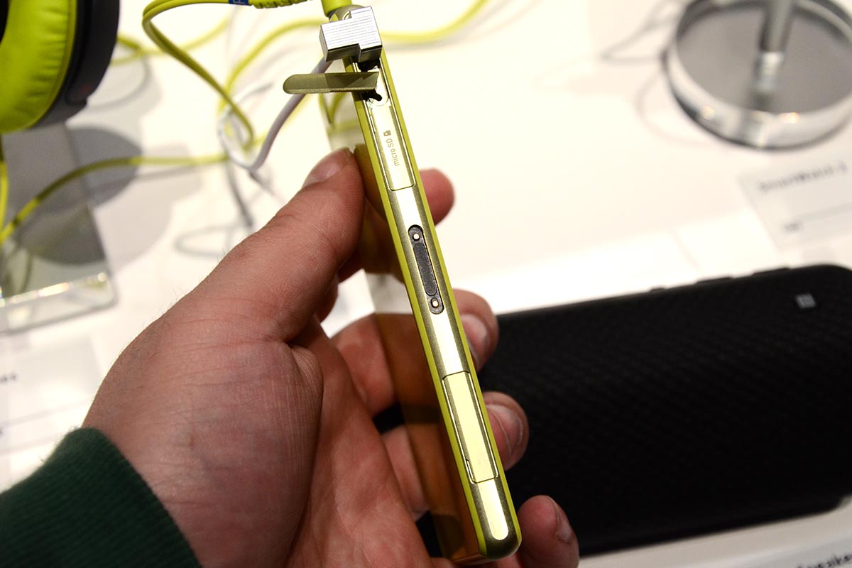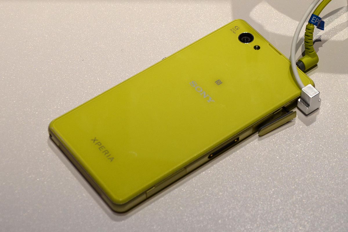 A Sony Xperia Z1 sem túl sok fémet tartalmazott, ezért a Z1 Compacttól sem vártuk, hogy változik a helyzet, ugyanúgy csak az oldalaknál fedezhető fel egy vékony alumínumból készült betét. Az összeszereléssel viszont nincs gond, és, ahogyan az előadáson elhangzott, a telefon a fekete és fehér mellett sárga és rózsaszín verzióban is elérhető lesz.