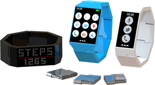 Így például aki egy fitnesz-karkötőt szeretne, az csak egy kis kijelzőt, pulzusmérőt, Bluetooth-adaptert, giroszkópot, GPS-t kell magával vigyen, míg az esti színházhoz egy elegánsabb kerek kijelzőt választhatunk. A nyaraláshoz több akkumulátorblokk összekapcsolásával az egész szíjat áramforrássá változtathatjuk, így az üzemidő is megnőhet, az NFC-t, SIM olvasót és 3G adaptert tartalmazó modul pedig az okostelefontól függetleníthet minket.