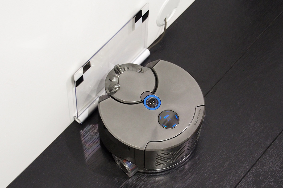 A Dyson 360 Eye egy feltöltéssel kb. 30-40 percig üzemel, de azt a Dyson szakemberei nem árulták el, hogy ezalatt az idő alatt nagyjából mekkora terület feltakarítására képes. Persze ezt nehéz is lett volna megmondani, hiszen a sebesség itt is nagyban függ a terület összetettségétől. Egy üres helyiségben biztosan sokkal jobban halad, mint egy berendezett szobában. Saját becslésünk szerint egy átlagos lakásban félóránként kb. 20-25 m2-nyi lakásterület kitakarítására lehet képes. Szerencsére az akku lemerülésekor automatikusan visszatér a dokkolójára, a 2,5 órát igénylő teljes töltés után pedig ott folytatja a takarítást, ahol abbahagyta. A folytatások számát tekintve nincs korlátozás, de 3 órás ciklusokkal számolva egy munkanapba maximum 3 takarítási menet férhet. A Dyson ugyanis úgy tervezte, hogy a robot akkor takarít, amíg mi dolgozni vagyunk. A lítium-ion akkumulátort akár gyorsabban is feltölthetnék, de a Dysonnál úgy gondolták, hogy pénzpazarlás lenne ennél gyorsabb töltőelektronikát építeni a robotba.