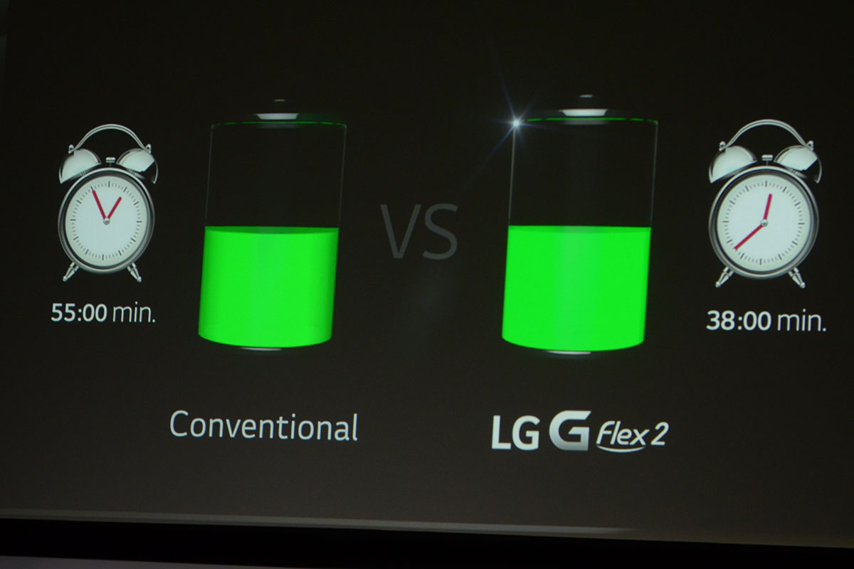 Az LG kiemelte még azt a telefonnal kapcsolatban, hogy akkumulátora 50%-ra kevesebb mint 40 perc alatt feltölthető.