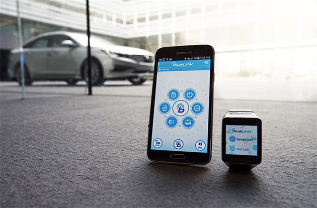 A Hyundai egy partnerével, a Station Digital Mediával együtt fejlesztette ki azt az okostelefonos alkalmazást, amellyel a Blue Linkkel felszerelt autók bizonyos funkciói hanggal is vezérelhetők. A motor elindítása és leállítása (ha távolról indítottuk be), az ajtók nyitása-zárása, az indexek és a kürt aktiválása tipikusan riasztós és kényelmi szolgáltatások, e mellett GPS-es autókeresést, segélyszolgálat-hívást, vagy a Blue Link szolgáltatás hívását is elvégezhetjük vele. Az alkalmazás okosórán is fut, tehát a Knight Rider-érzés átélhető vele. Igaz, nem egy SPM mód, de mégis több a Tesla S hasonló megoldásánál, hiszen itt a kapcsolat nincs autóhoz kötve, bármilyen Blue Link-csatolós autót párosíthatunk vele. Tehát a 2012-es Sonata, a 2015-ös Sonata, Genesis és Azera is használható vele. A Hyundai alkalmazása Samsung, Motorola, Sony és LG okosórákon biztosan fut.