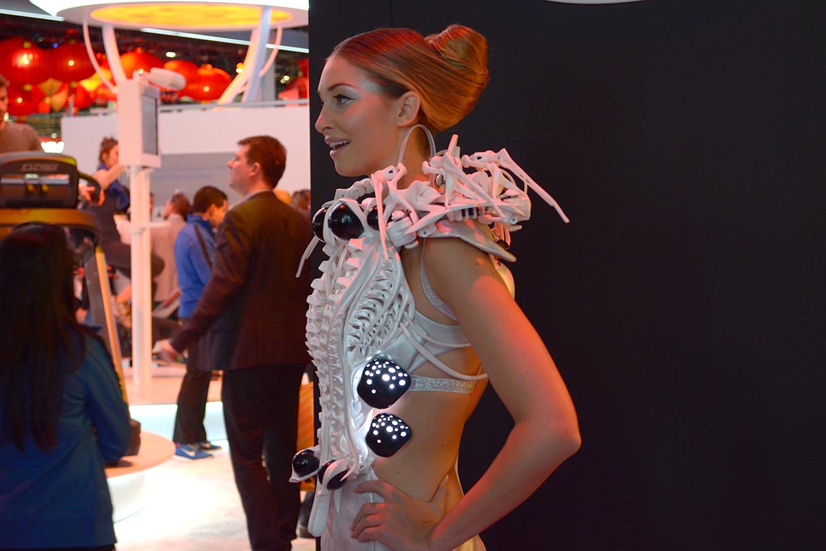 Anouk Wipprecht, holland művész egyik legújabb alkotása a pókruha 2.0, amely 3D nyomtatóval készült elemekből áll, és különlegessége, hogy önmagától mozgó alkatrészeket is tartalmaz. A pók szemeibe integrált mozgásérzékelőkkel az Intel Edison áramköre „veszélyt észlelve” kinyújtja karjait. A művész szerint a ruha nem védekező, hanem csábító mozdulatokat tesz. Vele talán egyet is érthetünk, a modell nem véletlenül csak ezt a ruhát viseli.