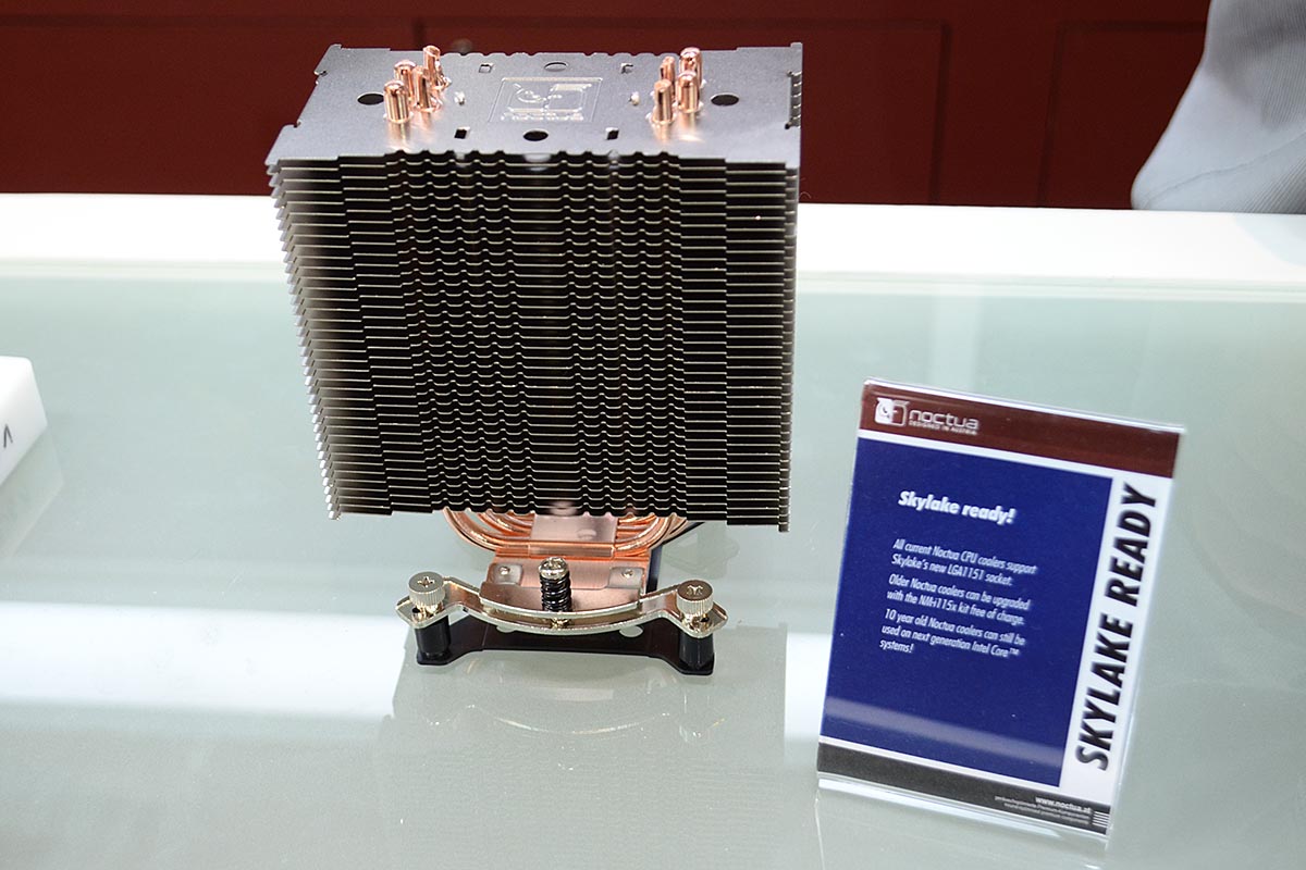A Noctuánál láttuk a vállalat egyik első hűtőjét is – elsőre nem is értettük, hogy mit keres az újdonságok között. Aztán kiderült, hogy azért van itt, mert az NM-i115x nevű kiegészítő segítségével ez a hűtő (valamint a gyártó összes eddig megjelent modellje) is kompatibilissé tehető a Skylake platformmal. Ingyen. Csak kérni kell, és valahogyan bizonyítani, hogy Noctua hűtővel rendelkezünk – ehhez a legjobb a számla, de ha az nincsen meg, akkor elég egy fotó is a meglévő gépről. A Noctua egyébként már nem először hajt végre ilyen akciót, és nekünk nagyon szimpatikus, hogy ezért az apróságért nem akar egy újabb bőrt lehúzni korábbi vásárlóiról.