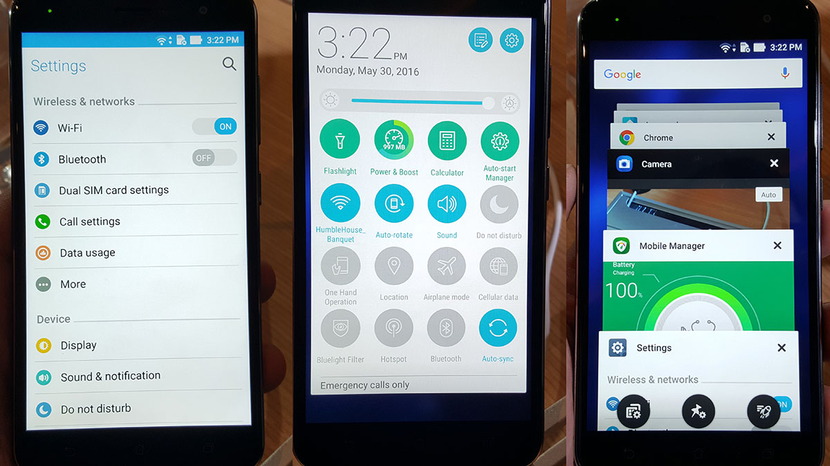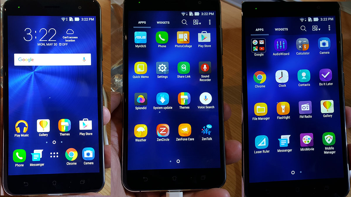 Operációs rendszerként az Android 6.0.1-et kapjuk és a ZenUI 3.0-s változatát. A szoftverrel kapcsoltban azt mindenképpen érdemes megemlíteni, hogy a kiállított modelleken (végre) kevés volt az extra szoftver, minden alkalmazás elfért kettő képernyőn úgy, hogy külön mappába csak a Google alkalmazásai kerültek.