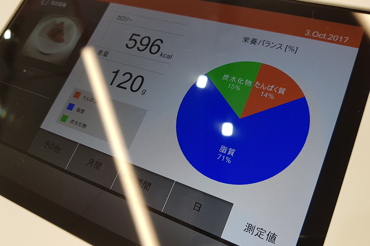 Létezik viszont egy technológia, amely infra fény segítéségével pontosan meg tudja állapítani, hogy egy adott adag étel milyen arányban tartalmaz zsírt, fehérjét és szénhidrátot – és a Panasonic elkészítette ennek a kütyünek a háztartásba is beépíthető, kompakt változatát. A kütyü nagyjából akkora, mint egy mikró, hiszen bele kell, hogy tudjunk tenni egy fogás ételt, tányérjával együtt. Gyorsan mér: 15 másodperc alatt meghatározza a tömeget és megmondja az arányokat. A 15 másodperc tényleg nem sok, főleg ha figyelembe vesszük azt is, hogy eddig a hasonló megoldások 2-3 percig is vizslatták az ételt a méricskélés során.