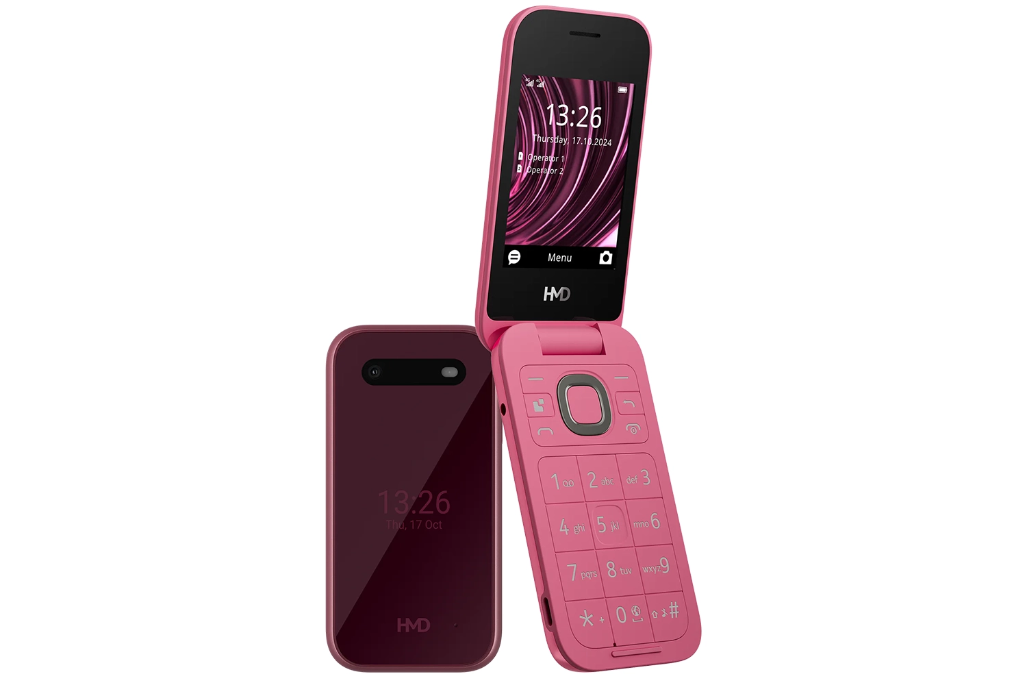 Az igazi klasszikus a HMD 2660 Flip, hivatalosan szinte minden ismeretlen órajelű és méretű benne, persze amíg telefonálni lehet, addig ezek az adatok nem is érdekelnek senkit (ha valakit mégis akkor: Unisoc T107 rendszerchip van a telefonban egyetlen darab 1 GHz-es Cortex A7 maggal, 64 MB RAM és 128 MB ROM, a tárhely pedig igény szerint bővíthető). A mobil a kinyitható telefonok táborát erősíti, kívül viszont egy árva pixel nem sok, annyi sincs rajta. Szétnyitva aztán elénk tárul a „hatalmas”, 2,8 colos QVGA kijelző a felső oldalon, valamint a funkció- és számgombok a másik oldalon. A HMD 2660 Flip annyi trükköt tud, hogy akár teljesen, 360 fokban kinyitható, ha ez lenne minden vágyunk. Ez esetleg a VGA felbontású (0,3 MP-es) szelfik készítésekor jöhet jól. A telefonba nevetségesnek hangzó, 1460 mAh-s akkumulátor került, de ne feledjük, hogy butamobilról van szó, így ez a kapacitás akár egyhetes üzemidőre is elegendő lehet. A mobilt Magyarországon áprilistól lehet megvásárolni, ára 32 ezer forint lesz.