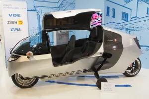 A svájci Peraves AG a világ leggazdaságosabb utcán is használható kétüléses járművét hozta el a kiállításra.